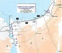 La campagne débute au printemps 1916. Suivant l’avancée des troupes britanniques, les soldats du génie construisent un chemin de fer (appelé chemin de fer militaire du Sinaï puis intégré aux chemins de fer de Palestine) partant de la gare d’El Qantara Est[1] vers El-Arich. La gare de Rafah est construite en mars 1917[2].