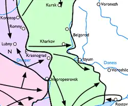 La 6e armée allemande encercla la ville par le nord tandis que la 17e armée fit de même en prenant par le sud, depuis les positions défensives soviétiques le 24 octobre.