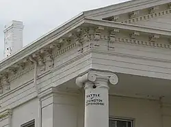 Le général Price avait établi ses quartiers généraux à Lexington dans une banque au 926 Main Street le , située en face tribunal du comté de Lafayette. Pendant la bataille de Lexington, Price dirige les opérations de la garde de l'État à partir d'une pièce du second étage. Le jour suivant, un boulet, probablement tiré par la batterie du capitaine Hiram Bledsoe de la garde de l'État, frappe le tribunal à seulement cent mètres du quartier général du général Price[13]. Selon des explications datant de 1920, le boulet ne se serait pas logé à l'origine dans la colonne, mais serait tombé et récupéré par un collectionneur. Des décennies après la bataille, l'homme âgé signe une attestation avec son histoire et remet le boulet aux commissaires du comté qui le placent avec une tige de 60 centimètres dans la colonne pour l'histoire[19],[20],[21].