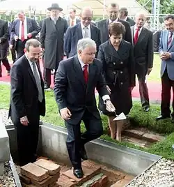 - Il existe également des cas où la pose de la première pierre en tant que début symbolique de la construction - c'est-à-dire au lieu d'un (premier) premier coup de pioche solennel - a eu lieu très tôt et que les travaux de construction finaux n'ont commencé que quelque temps plus tard, comme dans le cas du monument Düppel.
