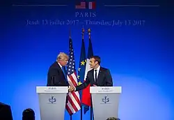 - ↑ « Donald Trump et Emmanuel Macron affichent leur entente à Paris », Le Monde.fr, (lire en ligne, consulté le ).