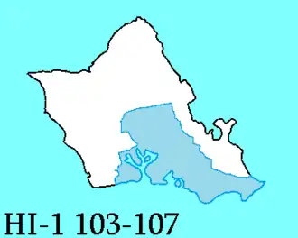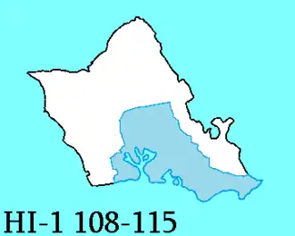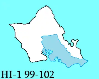 Le 1er district congressionnel d'Hawaï est un district de l'État américain d'Hawaï. Le district est entièrement sur l'île d'Oahu, englobant les zones urbaines de la ville et du Comté d'Honolulu, une ville-comté consolidée qui comprend les plaines centrales et les rives sud d'Oahu, y compris les villes d'Aiea, Mililani, Pearl City, Waipahu et Waimalu. Le district est plus petit et plus densément peuplé que le 2e district congressionnel (qui comprend le reste de l'État). Il est représenté par le Démocrate Ed Case.