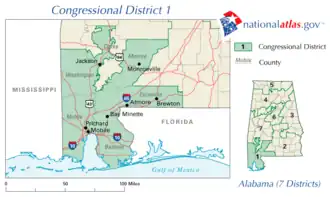 Il est formé de la totalité des comtés de Baldwin, Coffee, Covington, Dale, Escambia, Geneva, Henry et Houston, ainsi que d'une partie de celui de Mobile. La plus grande ville du district est Mobile.