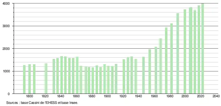 De 1962 à 1999 : population sans doubles comptes ; pour les dates suivantes : population municipale.