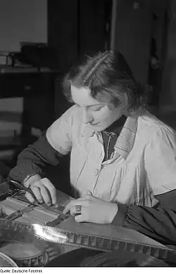 Elle servait également dans les cabines de projection à assembler les différents programmes ou à réparer les pellicules qui avaient subi une cassure.