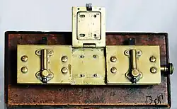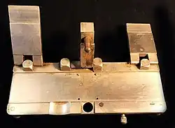 Après la taille des deux plans qui sont installés bout à bout (sans chevauchement) sur le plateau garni de plusieurs ergots, le monteur tire une portion de film adhésif qu’il rabat sur la jointure des plans. Il referme alors sur le dispositif une solide poignée à trois actions : elle applique fermement l’adhésif sur les pellicules, elle troue cet adhésif au droit des perforations du film, la double cisaille à levier qu'elle possède découpe le ruban adhésif à la largeur du film. L’opération est généralement répétée sur l’autre face du film, notamment si celui-ci doit être projeté, afin de consolider la « collure ». Les bandes son magnétiques perforées aux formats 35 mm ou 16 mm sont munies d’un adhésif du côté support seulement et leur jointure est en biais pour éviter un « cloc ! » sonore à la lecture. Sur la photo, on distingue à droite le couteau orthogonal pour couper les bandes image et le couteau en biais pour les bandes son magnétiques.