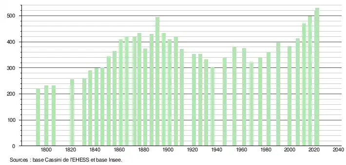 - ↑ Fiches Insee - Populations de référence de la commune pour les années 2006, 2007, 2008, 2009, 2010, 2011, 2012, 2013, 2014, 2015, 2016, 2017, 2018, 2019, 2020, 2021 et 2022.