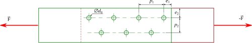 - p2 : distances entre rangées de boulons, prise perpendiculairement à l'effort,