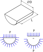 Comme précédemment, lorsque les pièces sont considérées comme indéformables et que le jeu est négligeable, nous pouvons considérer que la pression de contact est uniforme. Elle s'obtient également en considérant l'aire du disque diamétral[2],[9],[10] :