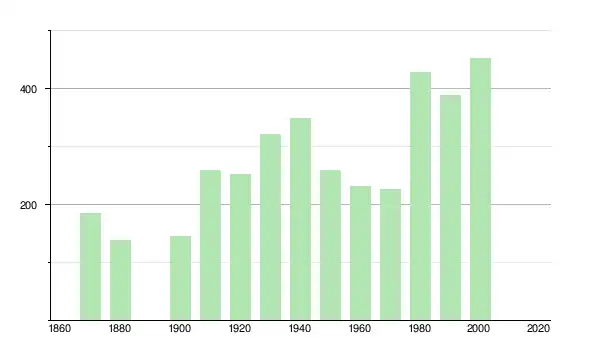 | 1880 | 139 | ▼ −25,27 % | |