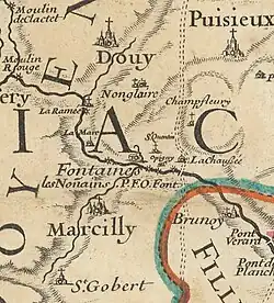 - ↑ Fontaine (sans s) est l'appellation actuelle du domaine du château.
