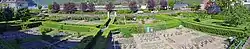Un escalier descend du niveau du rez-de-chaussée du bâtiment du prévôt à une salle de puits avec une porte cintrée, qui est à mi-hauteur du jardin. Son toit fait également office de terrasse. De là, un autre escalier mène aux compartiments du jardin formel. Celles-ci sont bordées de haies de buis, qui remontent à la fondation du jardin. La plantation se compose de plantes ornementales, utiles ou médicinales.