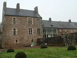 Les bâtiments de la ferme constituent une partie de l'enceinte qui se prolonge au niveau de la cour du manoir par un mur doté de contreforts.