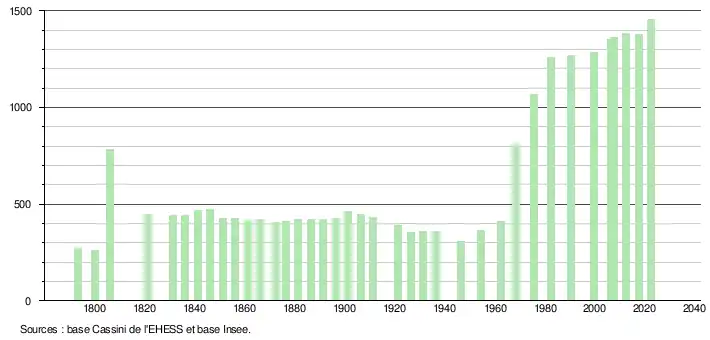 - ↑ Population municipale de référence en vigueur au 1er janvier 2025, millésimée 2022, définie dans les limites territoriales en vigueur au 1er janvier 2024, date de référence statistique : 1er janvier 2022.