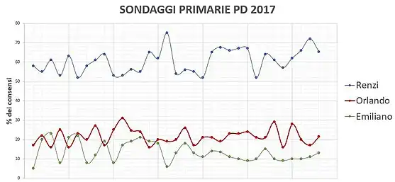 | Date | Institut | Renzi | Orlando | Emiliano | Autres | Avantage |