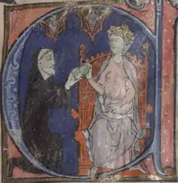 La chronique en vieux français de Primat de Saint-Denis, le Roman des rois, a été présentée au roi Philippe III vers 1274, probablement à la demande du père et prédécesseur de Philippe, Louis IX[8]. Un abbé de Saint-Denis, Matthieu de Vendôme, a également joué un rôle important dans sa production et est un personnage plus imposant que le roi dans la miniature de dédicace (en) originale[9]. Elle a été créée en traduisant et en adaptant des extraits de diverses histoires latines conservées dans les archives de Saint-Denis[8].
