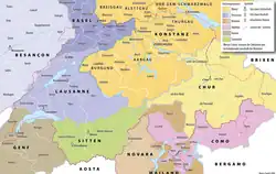 | 1524 et 1526 | Territoire épiscopal contrôlé par la Ligue de la Maison-Dieu |