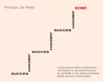 - par suite des promotions, l'employé finira (probablement) par atteindre un poste dans lequel il sera incompétent (n'ayant pas toutes les qualités requises) ;