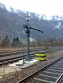 - 1 2 3 (en) Edward Ernest Russell Tratman, Railway Track and Track Work, New York, Engineering News Publishing Company, , 2e éd. (OCLC 2030207), chap. 11 (« Water and Coaling Stations and Other Track Accessories »)