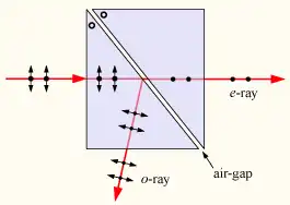 Un prisme de Glan-Foucault est un type de prisme qui est utilisé comme polariseur. Sa construction est similaire à un prisme de Glan-Thompson, sauf que deux prismes de calcite à angle droit sont espacés d'une lame d'air au lieu d'être cimentés ensemble[1]. La réflexion totale de la lumière polarisée p au niveau de l'entrefer signifie que seule la lumière polarisée s est transmise directement à travers le prisme.