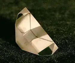 Le faisceau lumineux entrant dans le prisme par l'une des faces est ensuite reflété totalement par le « toit », puis le faisceau ressort par la deuxième face du prisme[2]. Le prisme peut être utilisé comme séparateur de faisceau dès lors que le faisceau une fois transmis est séparé par le toit en arrivant sur l'arête, chaque portion du faisceau subissant une réflexion totale. Il peut être aussi simplement utilisé comme déviateur de faisceau si le faisceau arrive entier sur l'une des faces du toit et est reflété successivement sur les deux faces du toit. Le premier cas demande une précision pour l'angle du toit de quelques arcsecondes seulement, donnant à l'élément un coût prohibitif[4].