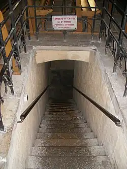Entrée de la crypte Saint-Privat depuis l'intérieur de la cathédrale de Mende.