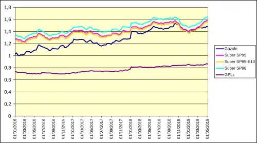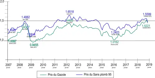 - ↑ « Prix de vente moyens nationaux des carburants routiers », sur prix-carburants.developpement-durable.gouv.fr (consulté le ).