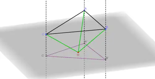 Le problème de Gergonne s'énoncé ainsi : pour un plan (P) et trois points A, B, C non alignés et non situés sur (P), trouver le point M sur (P) tel que AM+BM+CM soit minimale[2].