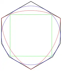 - ↑ (en) Hansen, « Small universal covers for sets of unit diameter », Geometriae Dedicata, vol. 42, no 2, , p. 205–213 (DOI 10.1007/BF00147549, MR 1163713, S2CID 122081393)