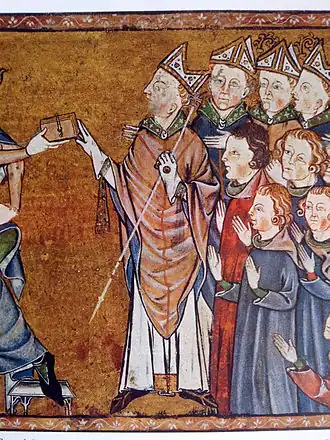 Le procès de l'ordre du Temple est une affaire judiciaire internationale du XIVe siècle. L'ordre du Temple est accusé en 1307[1],[2] par la royauté française de plusieurs chefs d'accusation comprenant l'hérésie, la simonie, la sodomie et l'idolâtrie[3]. Cette affaire prend une ampleur particulière car elle met en cause un ordre militaire composé de religieux et également parce qu'elle est une des conséquences de la lutte entre le roi de France Philippe le Bel et le pape Boniface VIII. L'affaire débute au matin du vendredi [4], et se termine avec la bulle papale Considerantes dudum fulminée par Clément V le [5] et la mort du maître de l'ordre Jacques de Molay sur le bûcher le ou [6]. Les biens de l'ordre sont dispersés dans les années qui suivent, notamment le [7] lorsque le pape Jean XXII reconnaît par la bulle papale Ad fructus uberes l'existence de l'ordre de Montesa dans le royaume d'Aragon, ainsi que le [8] en ce qui concerne l'ordre du Christ dans le royaume du Portugal.