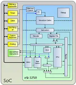 • DSP (digital signal processor), même si cette dernière famille est relativement spécifique. En effet, un processeur est un composant programmable et est donc a priori capable de réaliser tout type de programme. Toutefois, dans un souci d'optimisation, des processeurs spécialisés sont conçus et adaptés à certains types de calculs (3D, son, etc.). Les DSP sont des processeurs spécialisés pour les calculs liés au traitement de signaux[14]