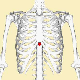 Il est de forme triangulaire avec sa base reliée au corps du sternum.
