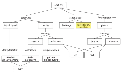 La poudre de lait, la matière grasse et la protéine de lait (caséine) sont des produits que les groupes fromagers revendent pour d'autres usages industriels comme la fabrication de produits pharmaceutiques et pour renforcer l'acier.