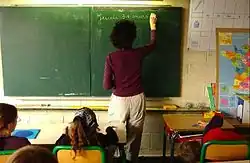 Une enseignante en classe en école élémentaire (cycle 3), en 2005.