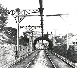 La première caténaire rigide fut celle de la Baltimore Belt Line électrifiée en 1890.