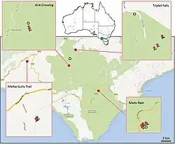 Cette espèce est endémique du Victoria en Australie[1]. Elle se rencontre dans le parc national Great Otway dans les monts Otway[2].