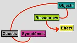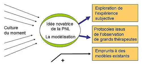La programmation neuro-linguistique est en premier lieu essentiellement constituée par la « modélisation »[29], c'est-à-dire la création d'un schéma logique, le modèle, qui permet d'extraire le fonctionnement essentiel d'un système observé. Ce principe formalisé dans les années 1950 avec l'émergence de la cybernétique et de la systémique est lié aussi bien à l'apparition de l'informatique que celle de nouvelles thérapies reprises par la PNL, d'où le terme commun de programmation.