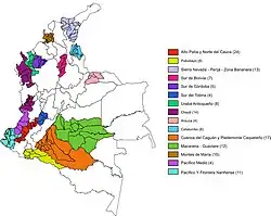 - ↑ (es) Haut Conseil pour l'après-conflit, « ¿ Qué es un PDET ? », sur especiales.presidencia.gov.co (version du sur Internet Archive)