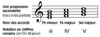 - (en) Cet article est partiellement ou en totalité issu de l’article de Wikipédia en anglais intitulé « Chord progression » (voir la liste des auteurs).