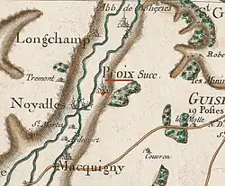 La carte de Cassini montre qu'au XVIIIè siècle, Proix est une paroisse située sur divers bras de la rive gauche de l'Oise. Ce bras a été intégré au XIXè siècle au canal de la Sambre à l'Oise.