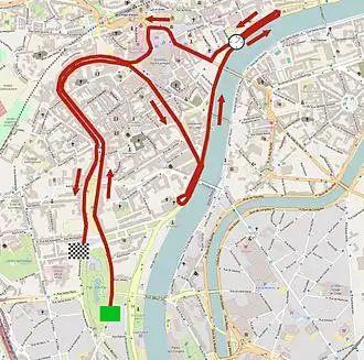 Le parcours est presque identique à celui de 2004[1], remporté par le Suisse Fabian Cancellara. La rampe de départ est située avenue Rogier à côté du parc d'Avroy. Le parcours se dirige vers le nord en empruntant boulevard d'Avroy et le boulevard de la Sauvenière. Il se poursuit le long de la Meuse, du quai Roosevelt à la Batte. À cet endroit, le parcours fait un demi-tour et passe sur la place Saint-Lambert, devant le Palais des Princes-Évêques. Les coureurs rejoignent l'arrivée, située sur le boulevard d'Avroy en face de la rue Sainte-Marie, en empruntant dans l'autre sens le boulevard de la Sauvenière[2].