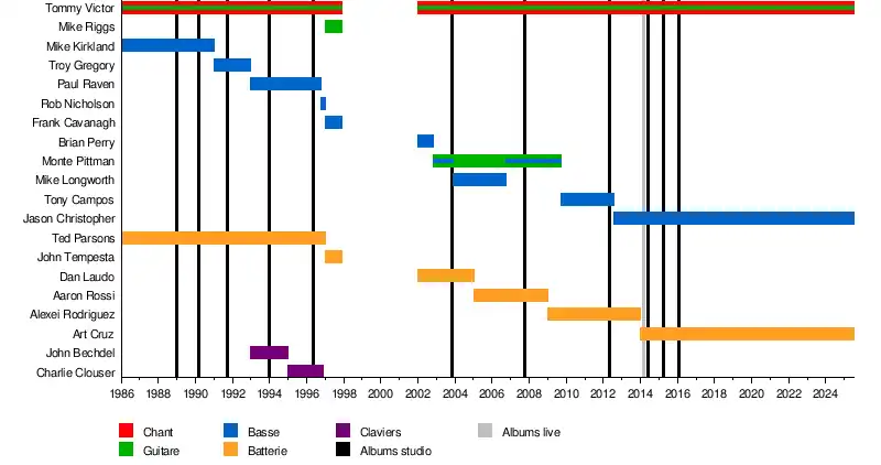 Ted Parsons John Tempesta Dan Laudo Aaron Rossi Alexei Rodriguez Mike Kirkland Troy Gregory Paul Raven Rob « Blasko » Nicholson Frank Cavanagh Brian Perry Mike Longworth Monte Pittman Tony Campos Mike Riggs John Bechdel Charlie Clouser |