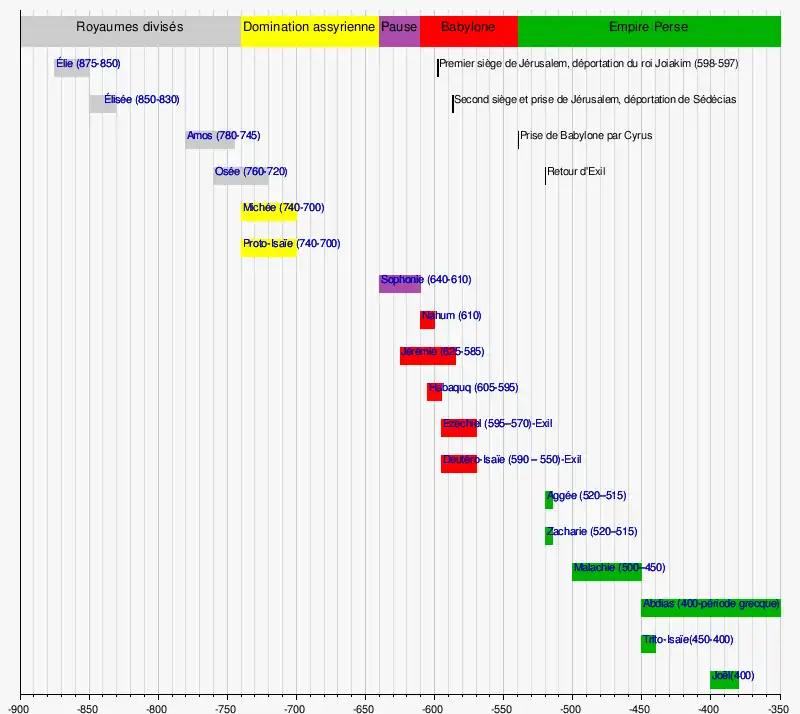 Cette frise présente l'époque durant laquelle chaque prophète aurait vécu, et non la période où le texte portant son nom aurait été rédigé.