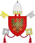 | 20. | L'étendard d'Ostie | Alexandre IV (1254–1261) | Rinaldo Conti di Segni | Des comtes de Segni, cardinal-évêque d'Ostie. Alexandre IV était cardinal-évêque d'Ostie et membre de la famille Conti-Segni[36],[37], comme son oncle Grégoire IX et le pape Innocent III. | ![]() |