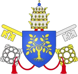 | 27. | La rose bien arrangée | Nicolas III (1277–1280) | Giovanni Gaetano Orsini | De la famille Ursina (Orsini), dont les armoiries portent une rose. Nicolas III, membre de la famille Orsini, reprend comme armoiries papales les armes de sa famille, à peine modifiées, avec une rose sur le chef de son blason[43],[44]. | ![]() |