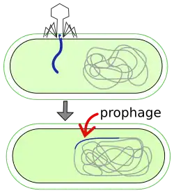 Les prophages sont des agents importants du transfert horizontal de gènes, et sont considérés comme faisant partie du mobilome. Toutes les familles de virus bactériens avec des génomes d'ADN circulaires (simple brin ou double brin) ou reproduisant leurs génomes par un intermédiaire circulaire (par exemple, les Caudovirales) ont des membres tempérés[3].
