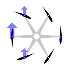 Utilisation du pas des hélices pour un Voith Schneider : pas de l'hélice tribord mis en marche avant, pas de l'hélice bâbord en marche arrière. Pour un déplacement transversal sur bâbord, il faut faire l'inverse.