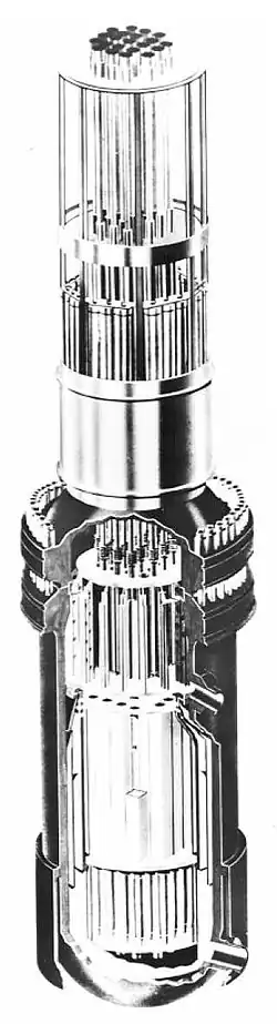 - ils ont une plus grande densité de puissance dans un petit volume ; certains fonctionnent avec de l'uranium faiblement enrichi (nécessitant des ravitaillements en combustible fréquents), d'autres fonctionnent avec de l'uranium hautement enrichi (plus de 20 % d’uranium 235, de 21 à 45 % dans les sous-marins soviétiques, plus de 96 % dans les sous-marins américains[11] et n'ont pas besoin d'être réapprovisionnés aussi souvent tout en étant plus silencieux en opération du fait de leur cœur plus petit[12] ;