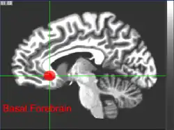 Le prosencéphale basal désigne la partie du cerveau située en avant du striatum sous la commissure postérieure. Elle contient un grand nombre de neurones cholinergiques, notamment au sein de la substantia innominata, qui jouent un rôle important dans de nombreuses fonctions cognitives et dans la régulation des cycles veille/sommeil et du niveau d'éveil. Les lésions de cette région peuvent entrainer des démences ou des amnésies sévères.