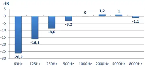 Plusieurs études[69] montrent pourtant que la pondération « A » semble sous-estimer l’effet nocif des fréquences basses mieux prises en compte par la pondération « C ».